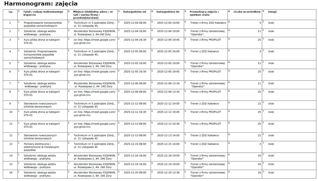 Harmonogram – grudzień 2025