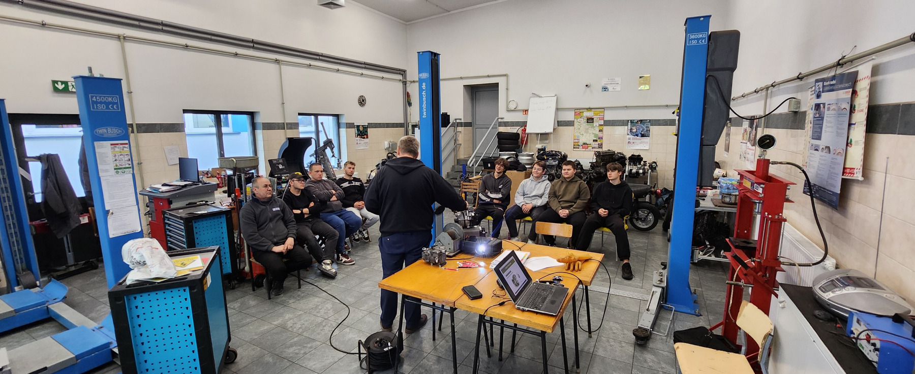 Grupa uczniów z kierunku technik mechanik samochodowy szkoliła się z obsługi samochodów elektrycznych i hybrydowych. Celem kursu była m.in.: obsługa pojazdów z układem wysokowoltowym, dezaktywacja układu wysokiego napięcia i budowa i działanie pojazdów mikrohybrydowych i hybrydowych,
